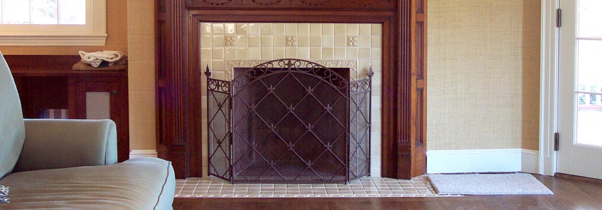 Tasteful and warm colors – custom ceramic tile surround and hearth