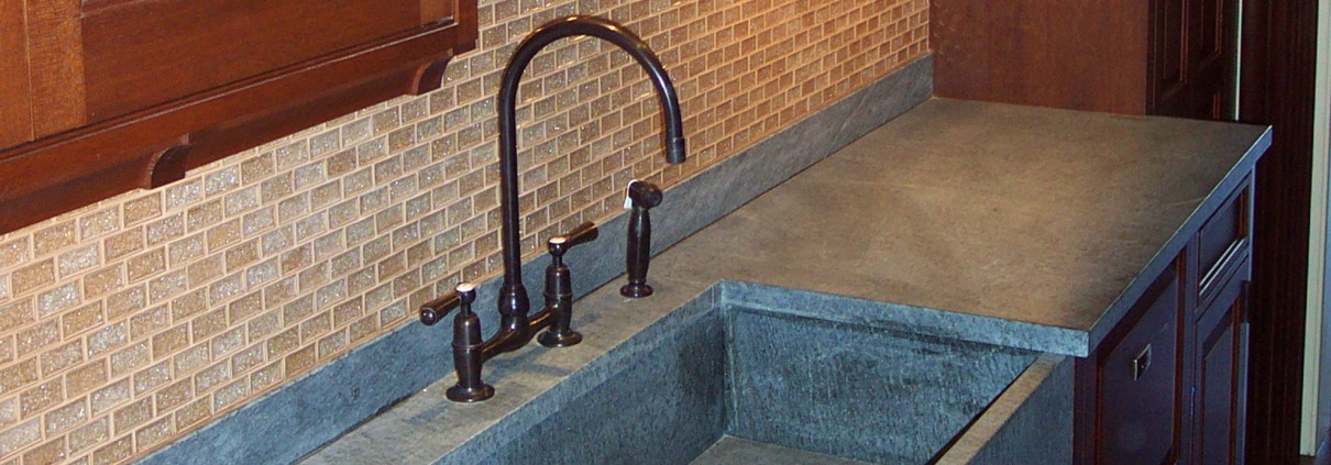 Aesthetic and functional custom soapstone and glass tile kitchen