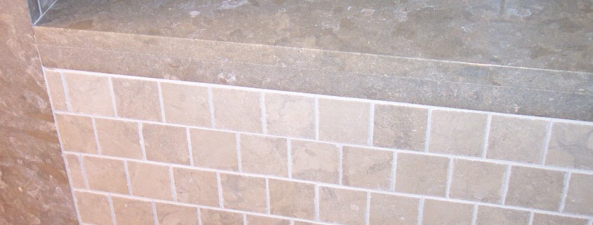 /in Bathrooms, StoneLagos Azul – stone tile made flush with ¾” thick stone