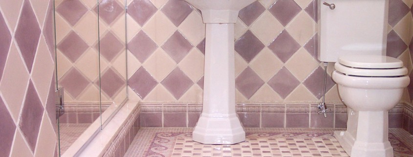 /in Bathrooms, Custom, Marble, MosaicSkillfully installed custom mosaic as a feature wall and various borders.