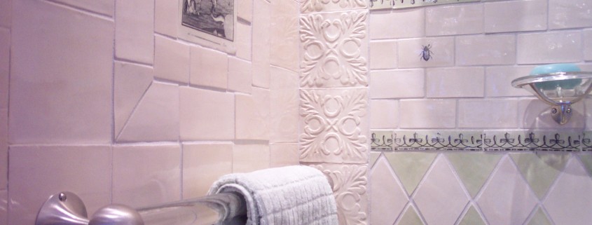 /in Antique, Bathrooms, Ceramic Tile, CustomCustom imperfect ceramic tile with funky playful feature tile.