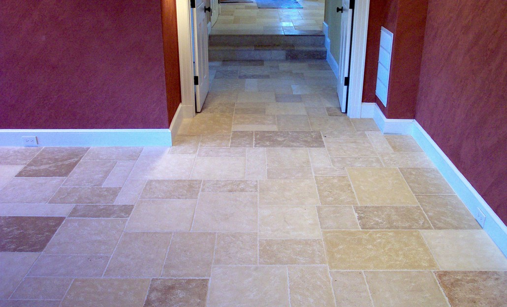 The action of applying a professional material that penetrates the material and protects it from staining and other discoloration for both the tile and the grout.